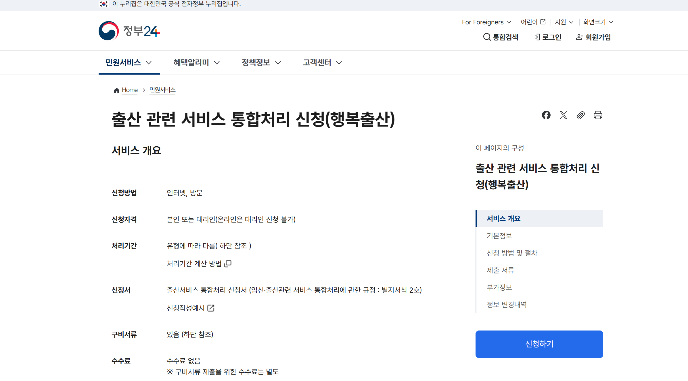- 출산 전이라도 미리 정부 24 회원가입을 해두면 출산 후 훨씬 빠르게 진행할 수 있어요.
